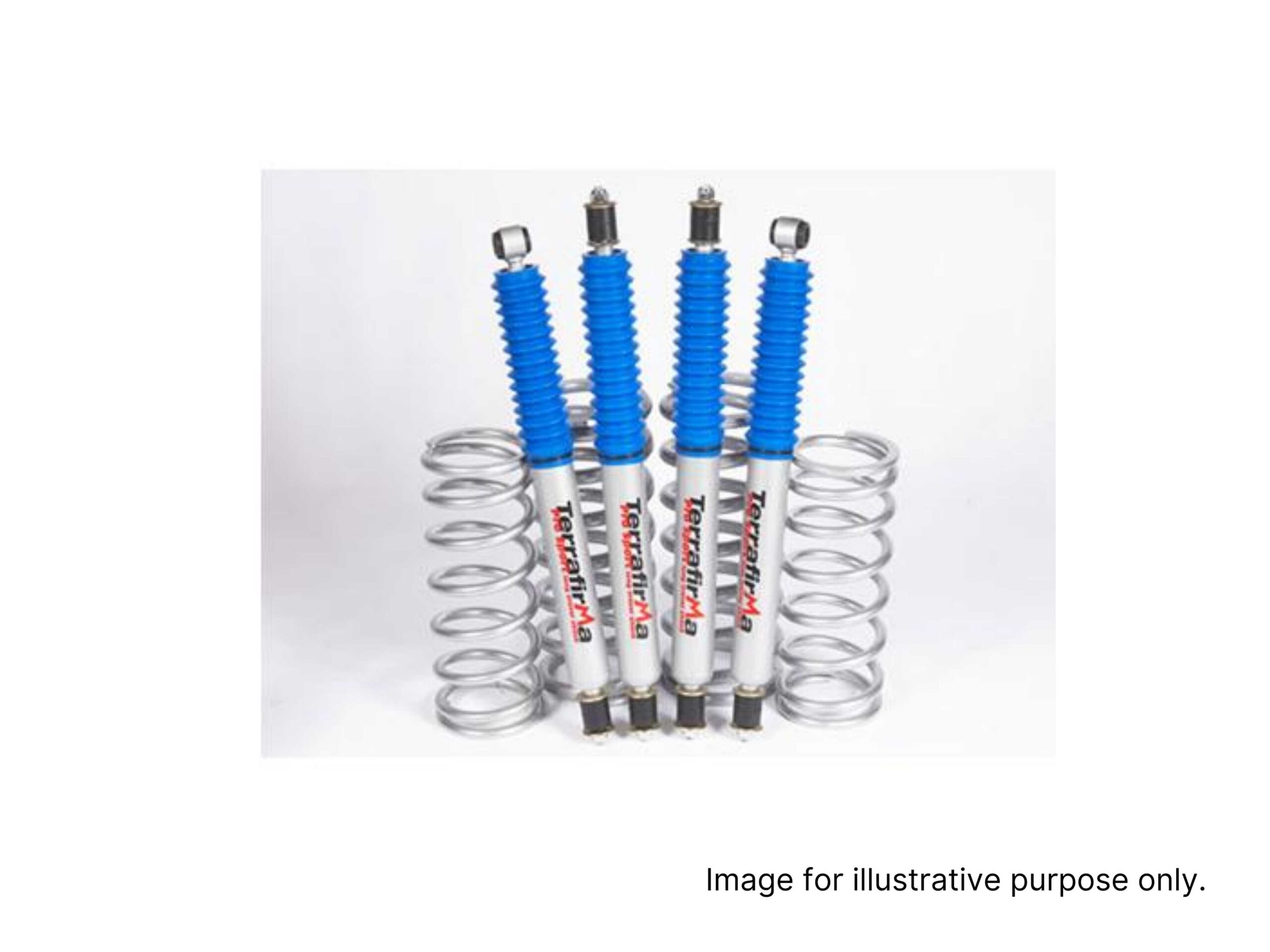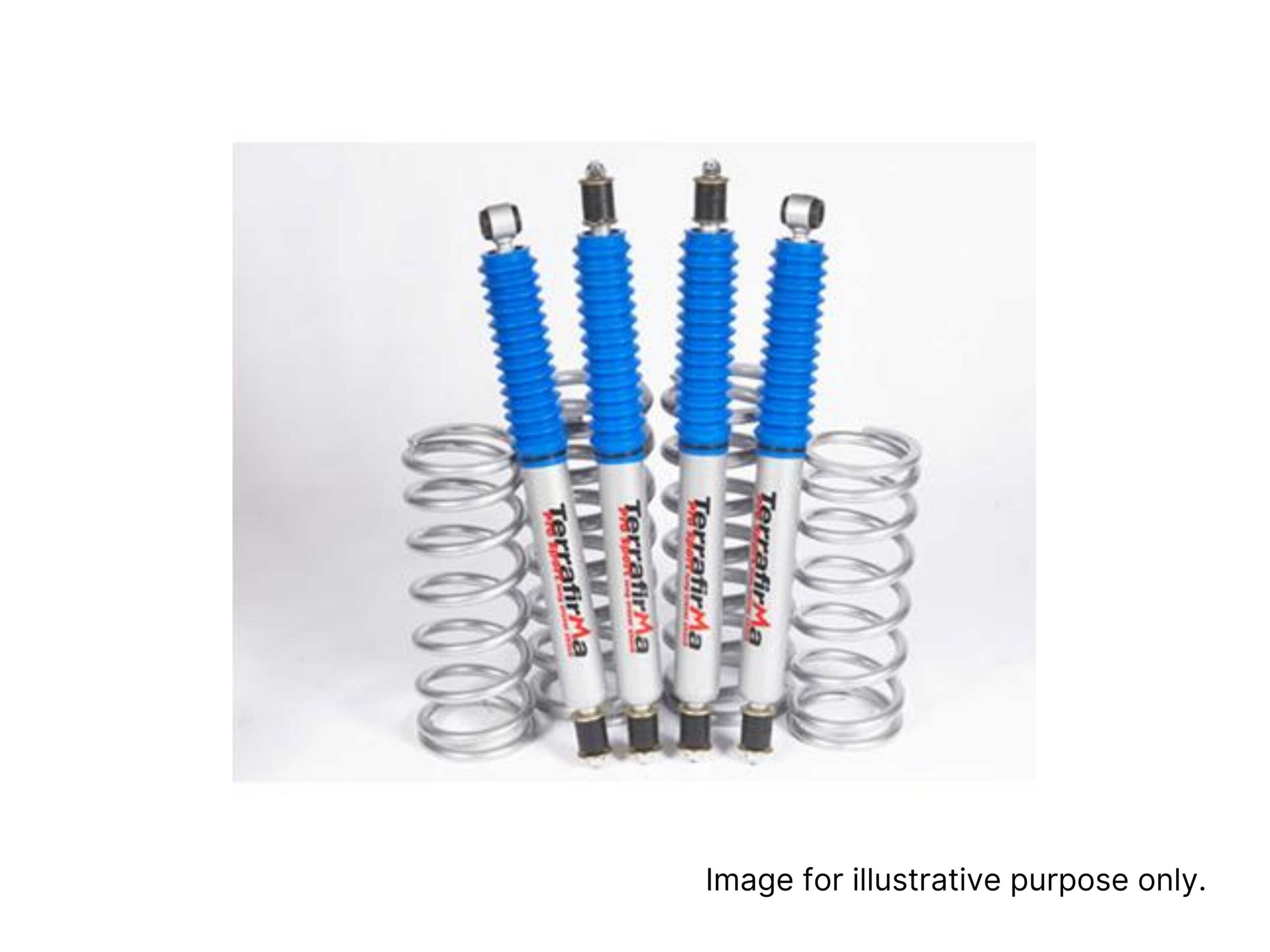 The TF208 Pro-Sport Medium Load Suspension Kit should be used on vehicles carrying up to 100kg additional equipment, such as a winch and bumper fitted to the front and up to 200kg equipment/load to the rear. This kit will give approximately 2" (50mm)
